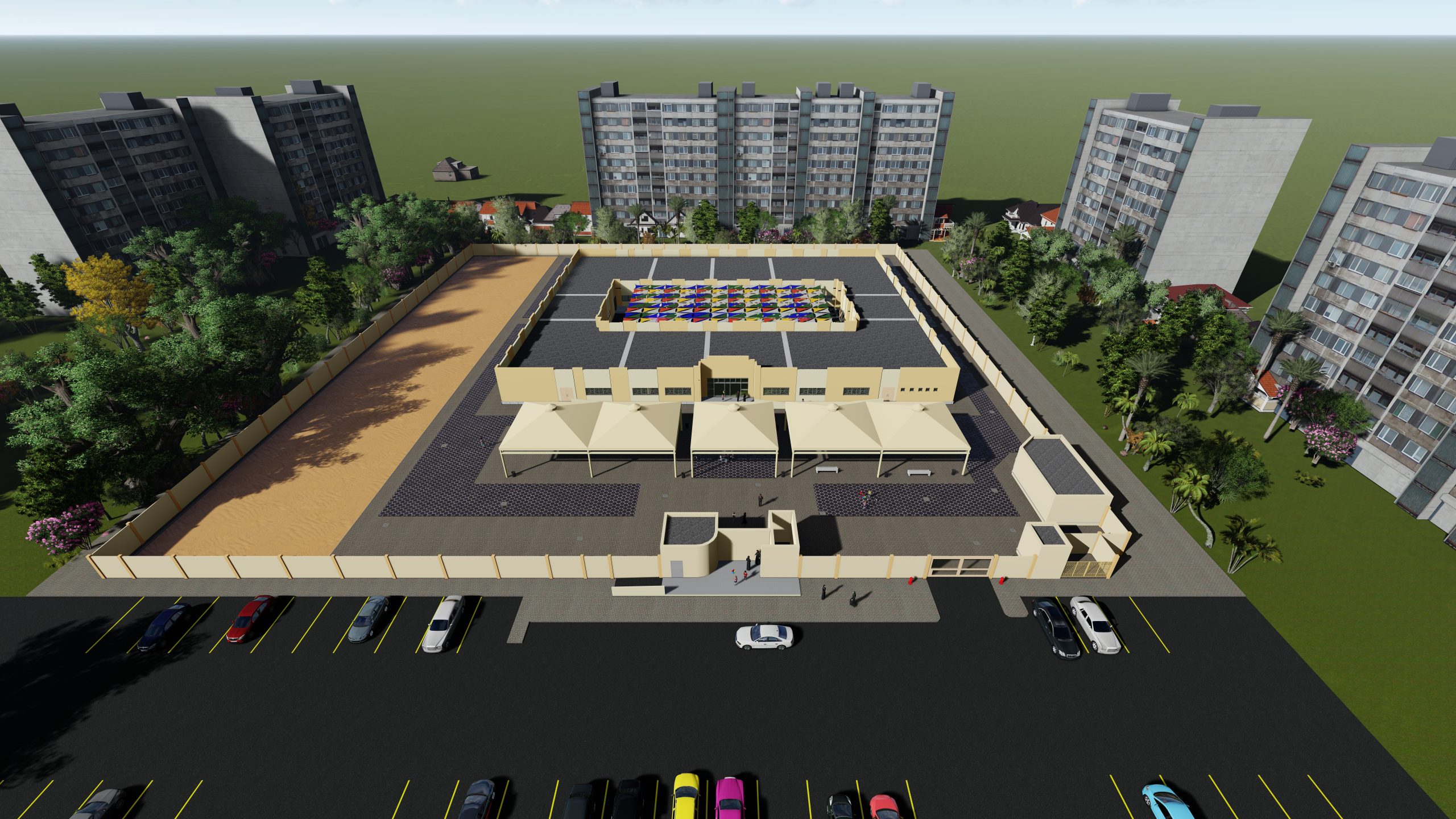 2- المشاركة في تنفيذ مجمع سكني وإداري وتنسيق حدائق ومنتزهات